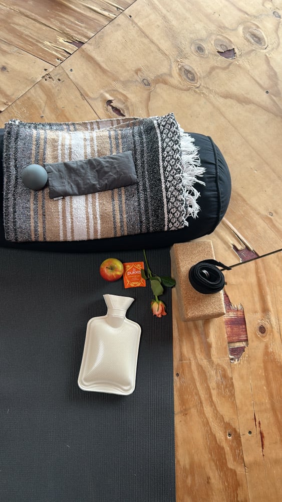 Rest your body into a yogic sleep bed with the support of soft cushions, eye pillows, blankets and an added infusion of deep warmth with hot water bottles to warm and ground your body.